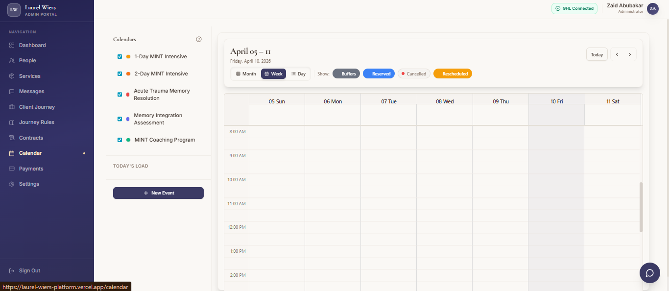 We engineered a calendar system that understands the cognitive profile of each service. Every booking type has its own buffer logic, cooldown window, and daily volume ceiling, making it structurally impossible to schedule into burnout.